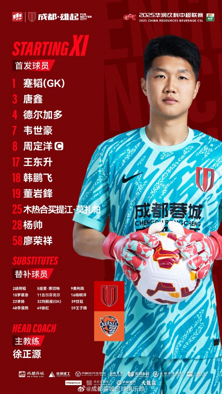 比赛首发名单出炉!成王人,雄起!