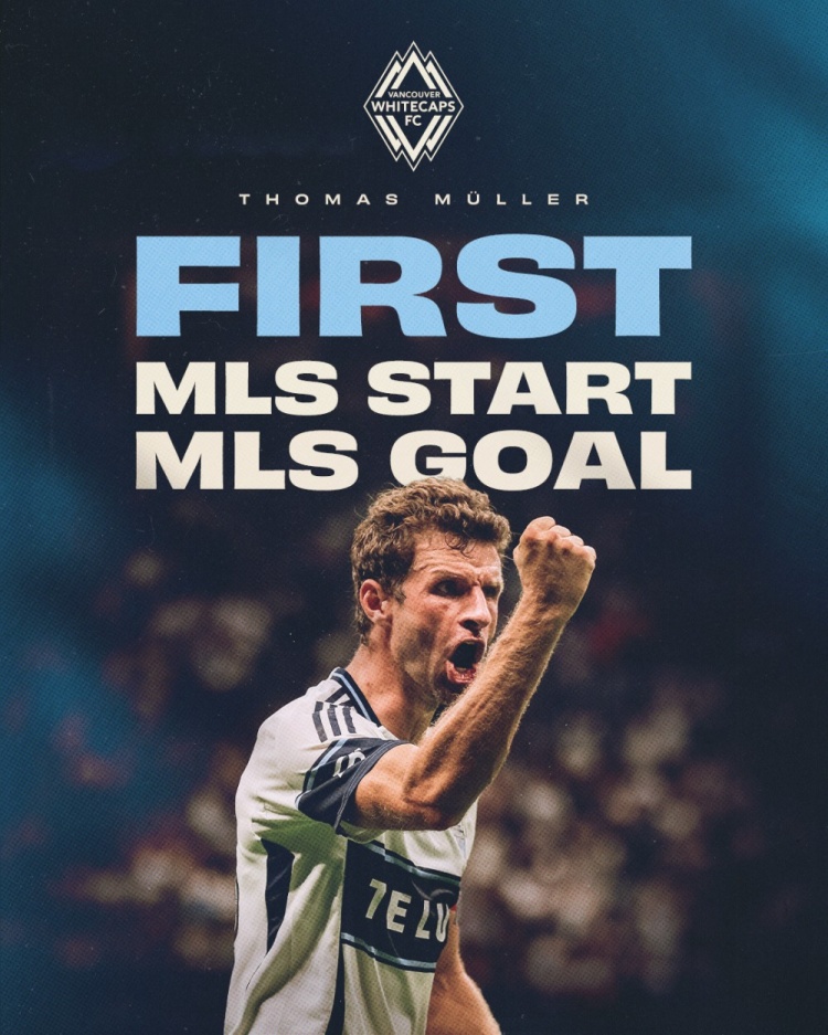 8月24日讯 温哥华白浪今天晒出穆勒海报,庆祝他打入大定约首球。