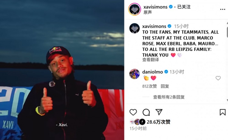 西蒙斯写说念:“致球迷、队友、俱乐部举座责任主说念主员、马尔科-罗斯、马克斯-埃贝尔、巴巴、毛罗......感谢莱比锡专家庭的每一位成员 !