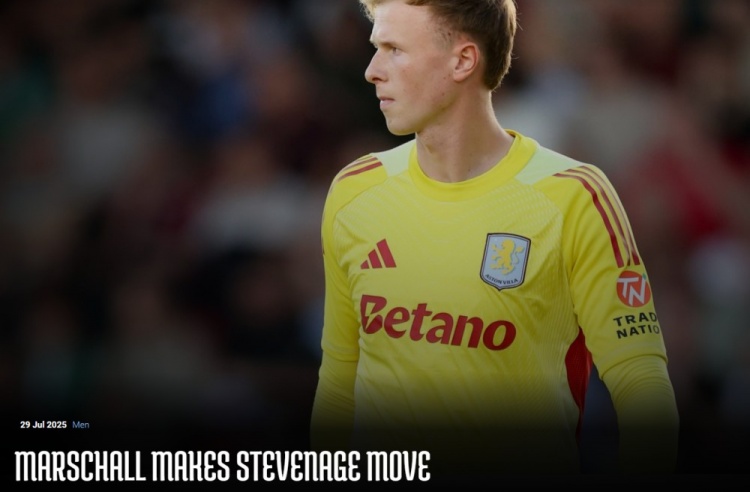 维拉官方:22岁门将马绍尔转会加盟英甲斯蒂文尼奇