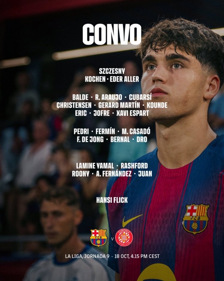 巴萨对阵赫罗纳名单:亚马尔、费尔明在列,莱万、费兰等多东说念主缺席