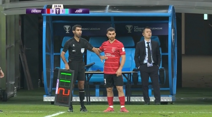 比赛第29分钟,成齐蓉城作念出换东谈主退换,胡荷韬因伤被动离场,古尔芬克尔替补登场。场上比分蓉城0-1柔佛。