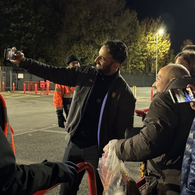 此前备受诟病的主帅阿莫林也在赛后获取追捧,在比赛为止两小时后仍然在为曼联球迷们签名合影,他在提起手机自拍时也流露了激昂的笑脸。