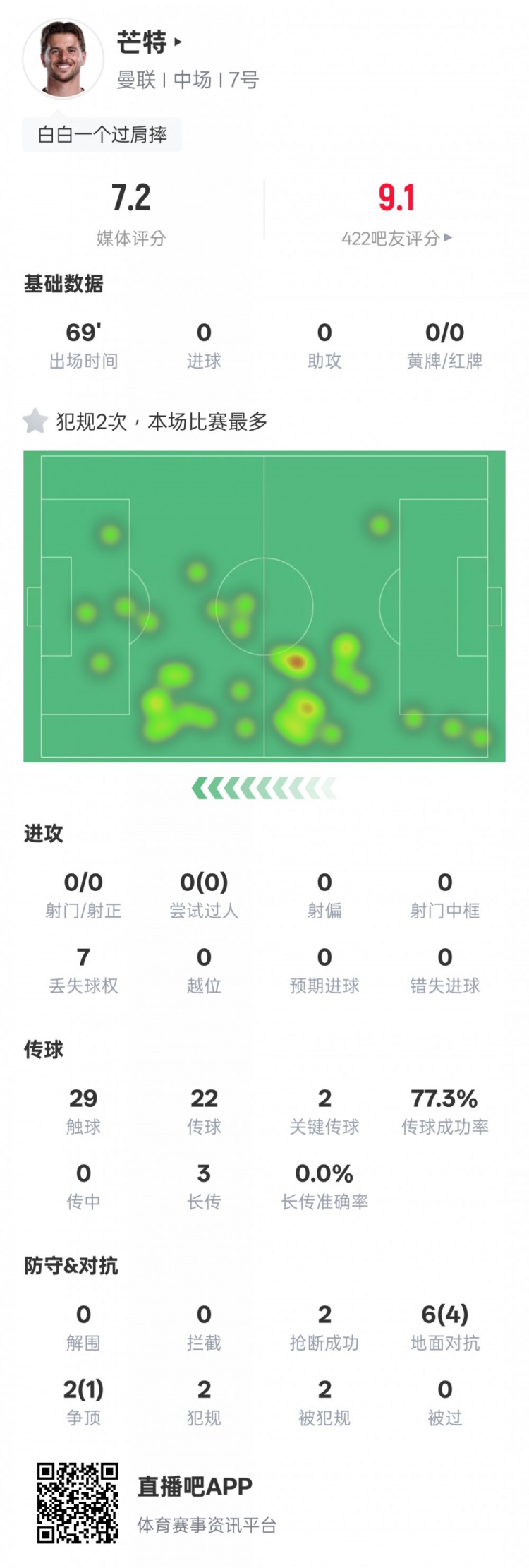8月25日讯 2025-26赛季英超第2轮,曼联客场1-1富勒姆。芒特先发出战,送出2次关节传球,还有2次抢断,6次大地挣扎4次凯旋,评分7.2。