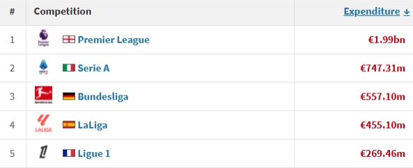 遥遥最初!英超7队今夏花超1亿欧,拜仁花7230万在英超排不进前十