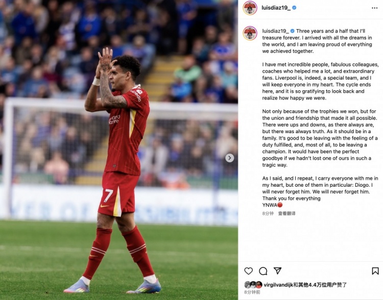 迪亚斯深情告别赤军:永远不会健忘若塔,谢谢你们赐与我的一切