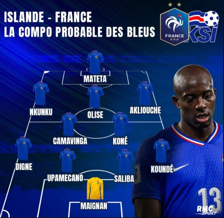 法媒臆度法国对阵冰岛首发:马特塔出战,于帕、萨利巴搭档中卫