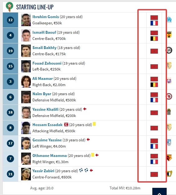 摩洛哥世青赛决赛首发:6东谈主双重国籍,4个法国裔+2个比利时裔