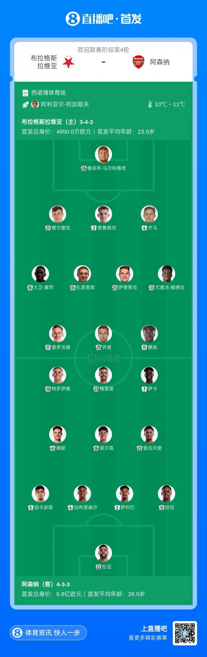 11月05日讯 欧冠第4轮,阿森纳将客战布拉格斯拉维亚,赛前枪手也曾公布了本场比赛的首发名单。
