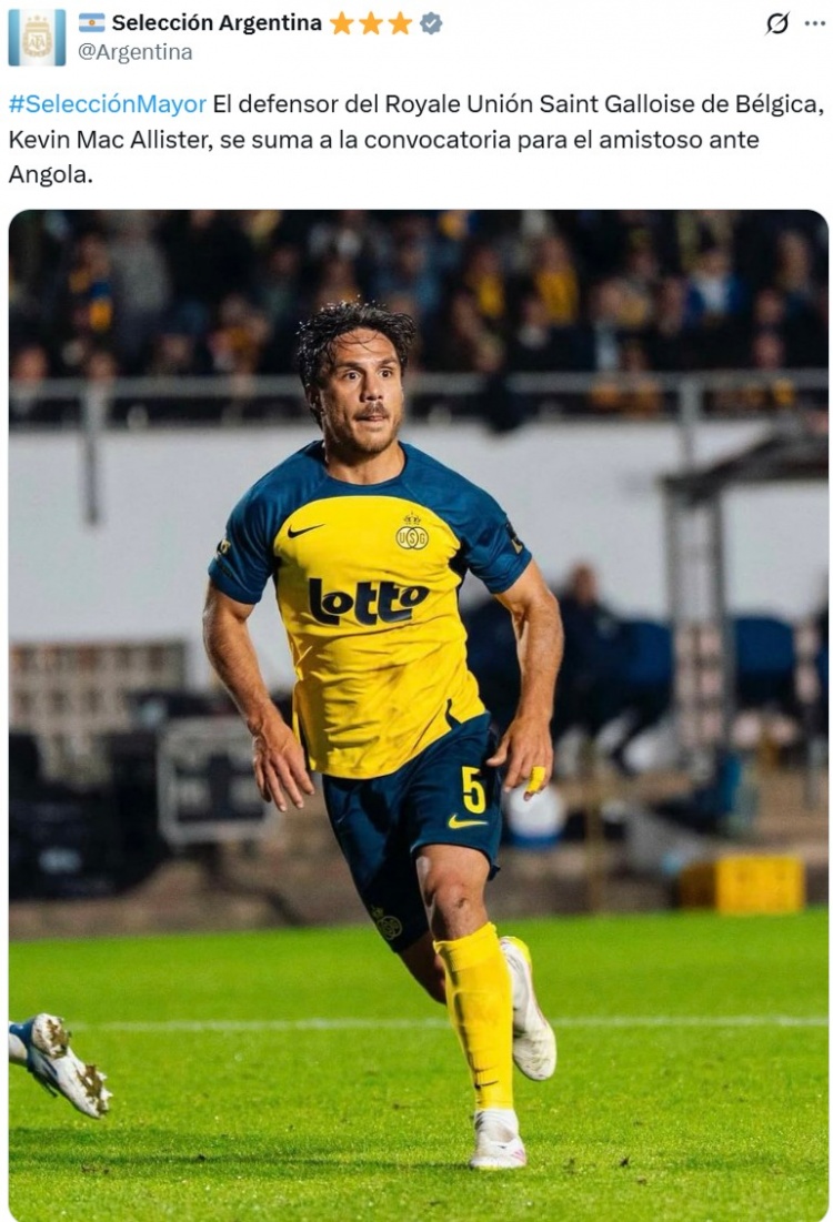 11月10日讯 阿根廷国度队官方音问,利物浦球员麦卡利斯特的哥哥凯文-麦卡利斯特补招参加本期国度队名单,球队将在本周友谊赛对阵安哥拉。