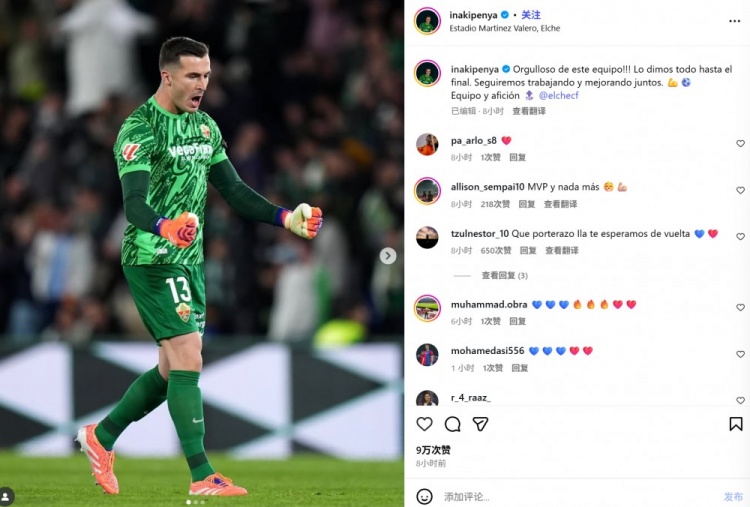 屡次扑救平皇马!外租门将佩尼亚社媒记挂,巴萨球迷纷繁留言援救