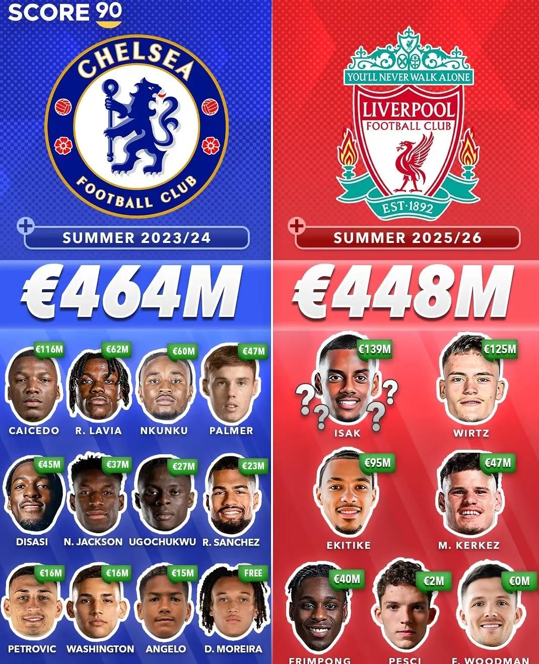 利物浦和切尔西成为夏窗最大赢家