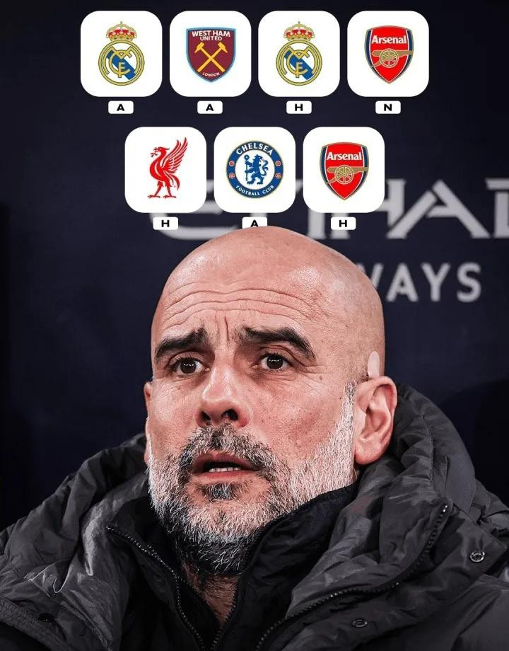 赛季来到冲刺跑 阶段,曼城迎来一波魔鬼赛程。打完西汉姆联的这场英超职业联赛 后,曼城还有跟皇马的欧冠16强战第二局 、职业联赛 杯总决赛 打阿森纳、足总杯8强战面对利物浦,以及职业联赛 面对切尔西和跟阿森纳的天王山之战。