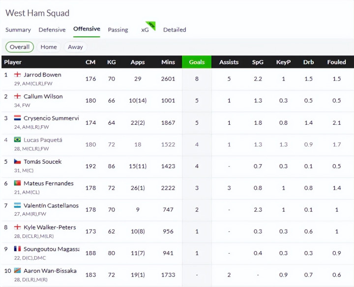本赛季西汉姆联的攻击 表现不好,是导致他们排名不高的关键原因。前29轮英超过后才打入35球,在帕奎塔离队后,本赛季英超有过得分 的球员一共才8人,得分 最多的是鲍文。