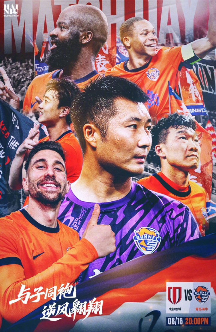 08月16日讯 今晚20点,中超第21轮成王人蓉城vs青岛海牛。赛前首发声势还是公布。