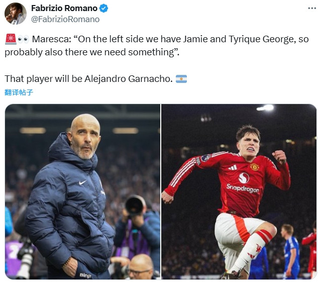 罗马诺暗意那名球员将是加纳乔。