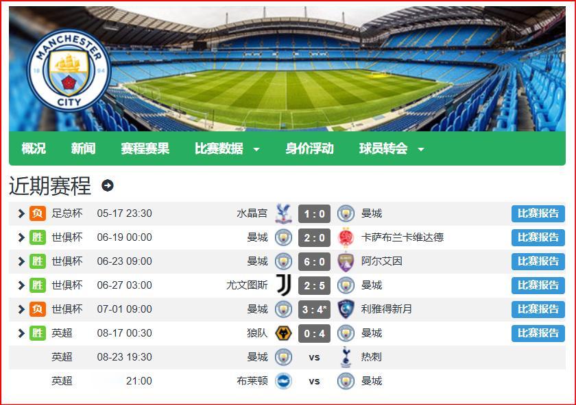 曼城:从大威望到小威望