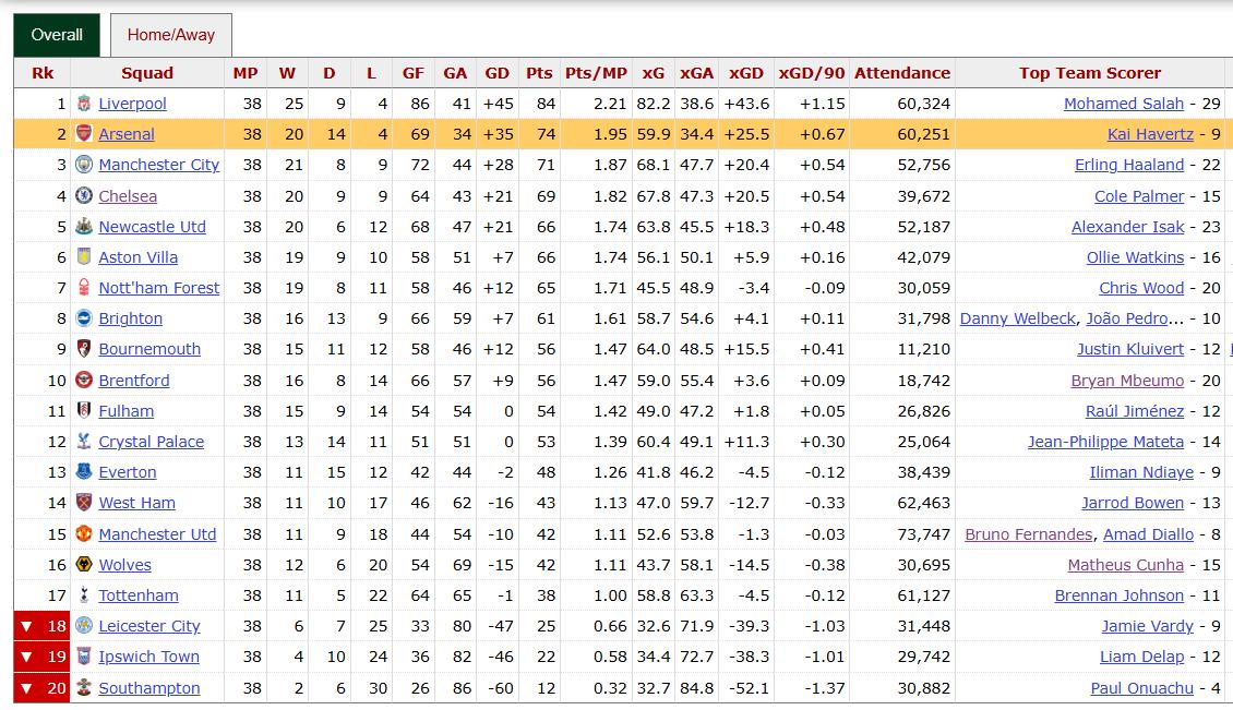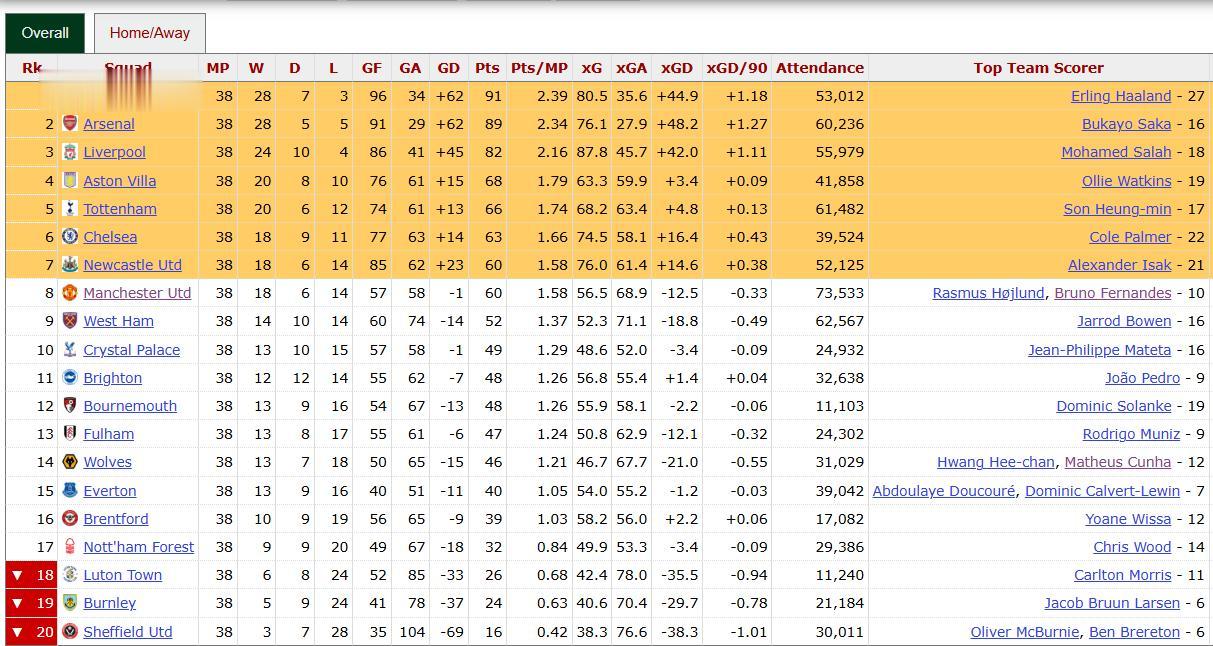 那么奈何办呢?你加强防卫,就必须焚烧迫切本领,根源性问题还莫得解决。是以,英超球队选拔的作念法是:加免强切、补强锋线,上赛季唯有2支球队的赛季进球数跳跃70球,不悠闲的不单是是曼联和热刺,还有阿森纳、纽卡斯尔,以致包括了曼城、利物浦,曼城和利物浦是但愿回到赛季打进90球的期间。
