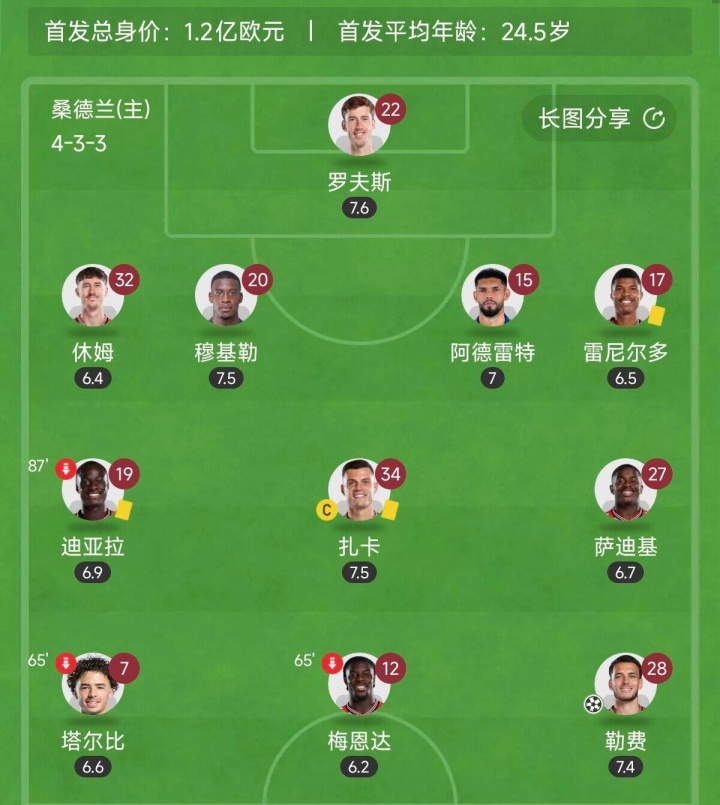 桑德兰算作英超升班马,球队消费1.65亿欧豪购新援,有诸多名将加盟,包括扎卡、穆基勒、勒费、迪亚拉等等。本场比赛黑猫的首发11东谈主,有9东谈主是今夏到来的新援,仅有休姆和梅恩达是“元老”。