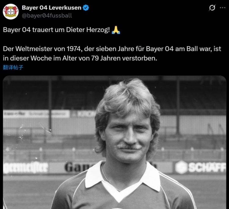 在官方公告中,勒沃库森声明:“俱乐部对迪特·赫尔佐格的磨灭暗示吊问! 🙏他曾服从于勒沃库森7年,这位1974年寰球杯冠戎行成员于本周亏损,享年79岁。”