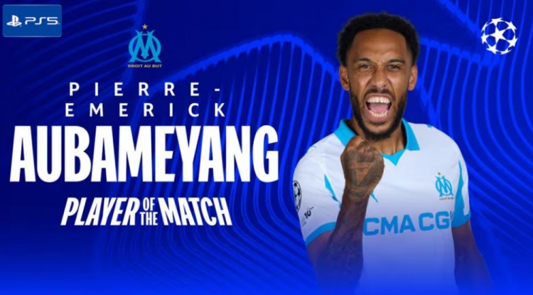 梅开二度!官方:奥巴梅扬当选马赛2-1纽卡全场最好球员