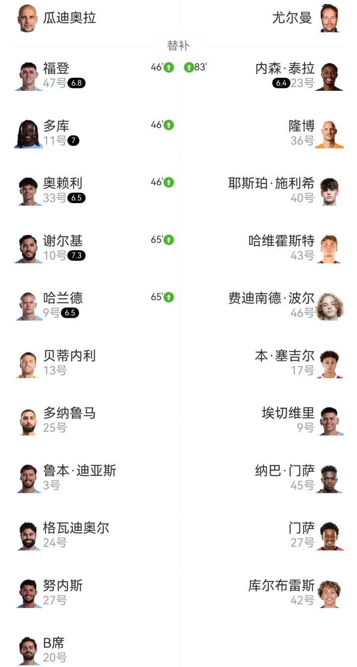 曼城虽在半场和第65分钟换上统共主力,其中包括哈兰德、福登、多库、谢尔基、奥赖利,瓜帅仍难救助输球结局。