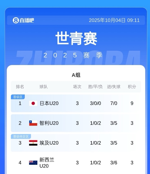 全胜出线!世青赛:日本U20三战全胜,进7球0丢球晋级16强