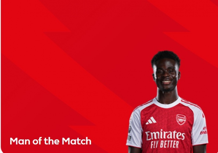 英超官方在赛后通告,萨卡以33%得票率被球迷票选为本场比赛的全场最好球员。