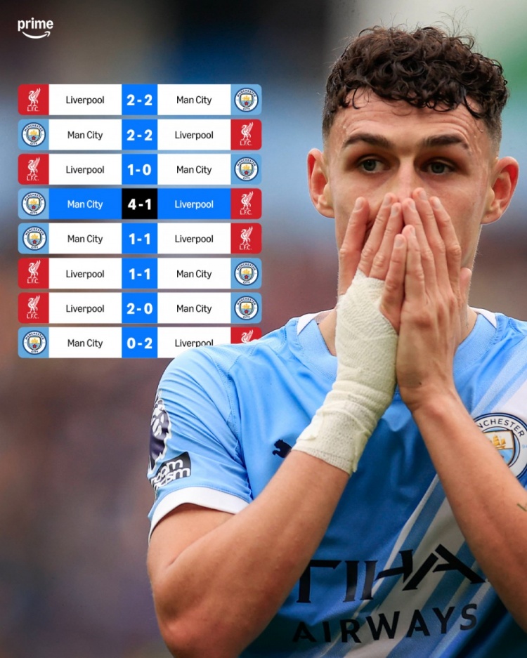 1胜4平3负!近8次在英超对阵利物浦,曼城仅取胜1场